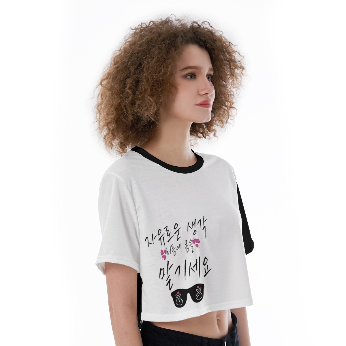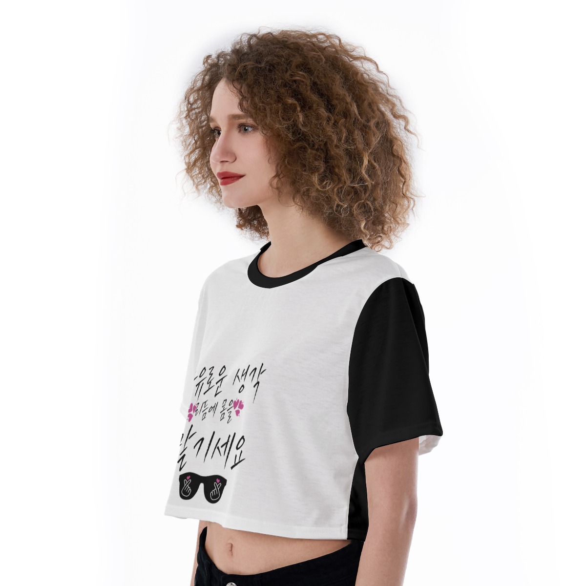 - Cropped hem,crew neck